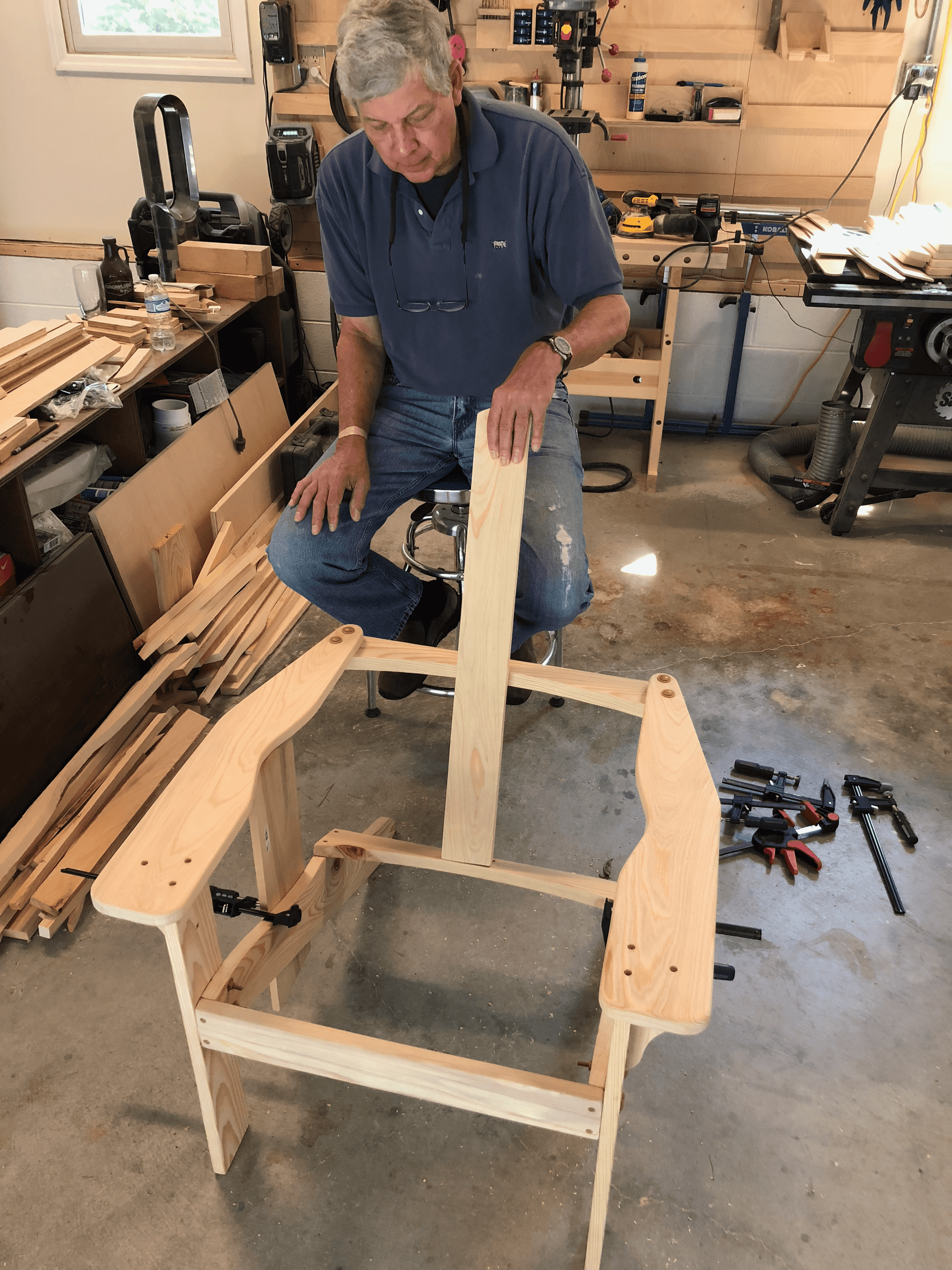 Dad came over to help with the build and have a couple of beers (aftrer we were done milling for the day). The chair frame came together quickly once we had a rhythm going.