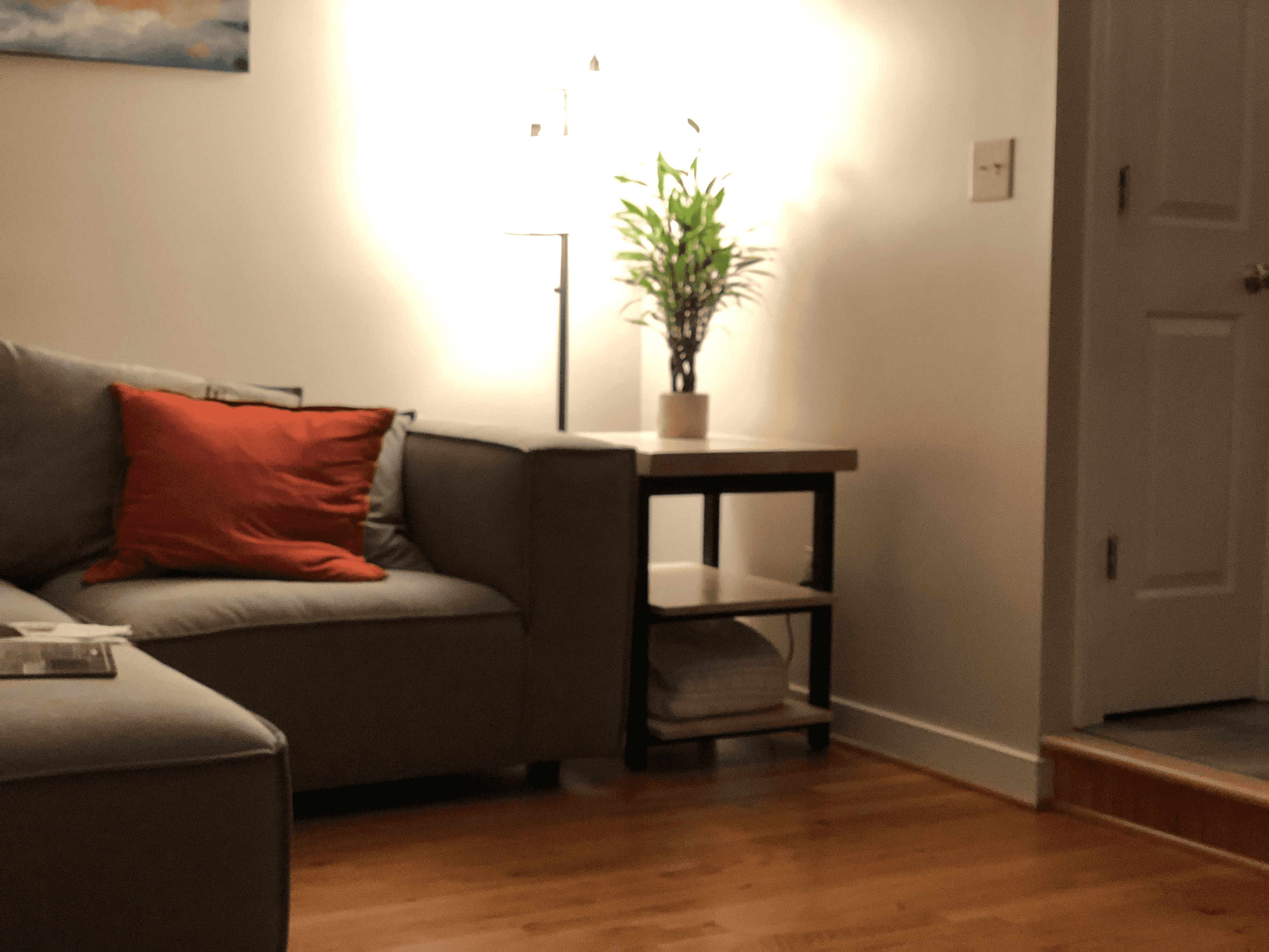 The empty corner next to the couch was prime real estate for a side table. The existing furniture had clean lines and a modern feel, so the table needed to complement that aesthetic.