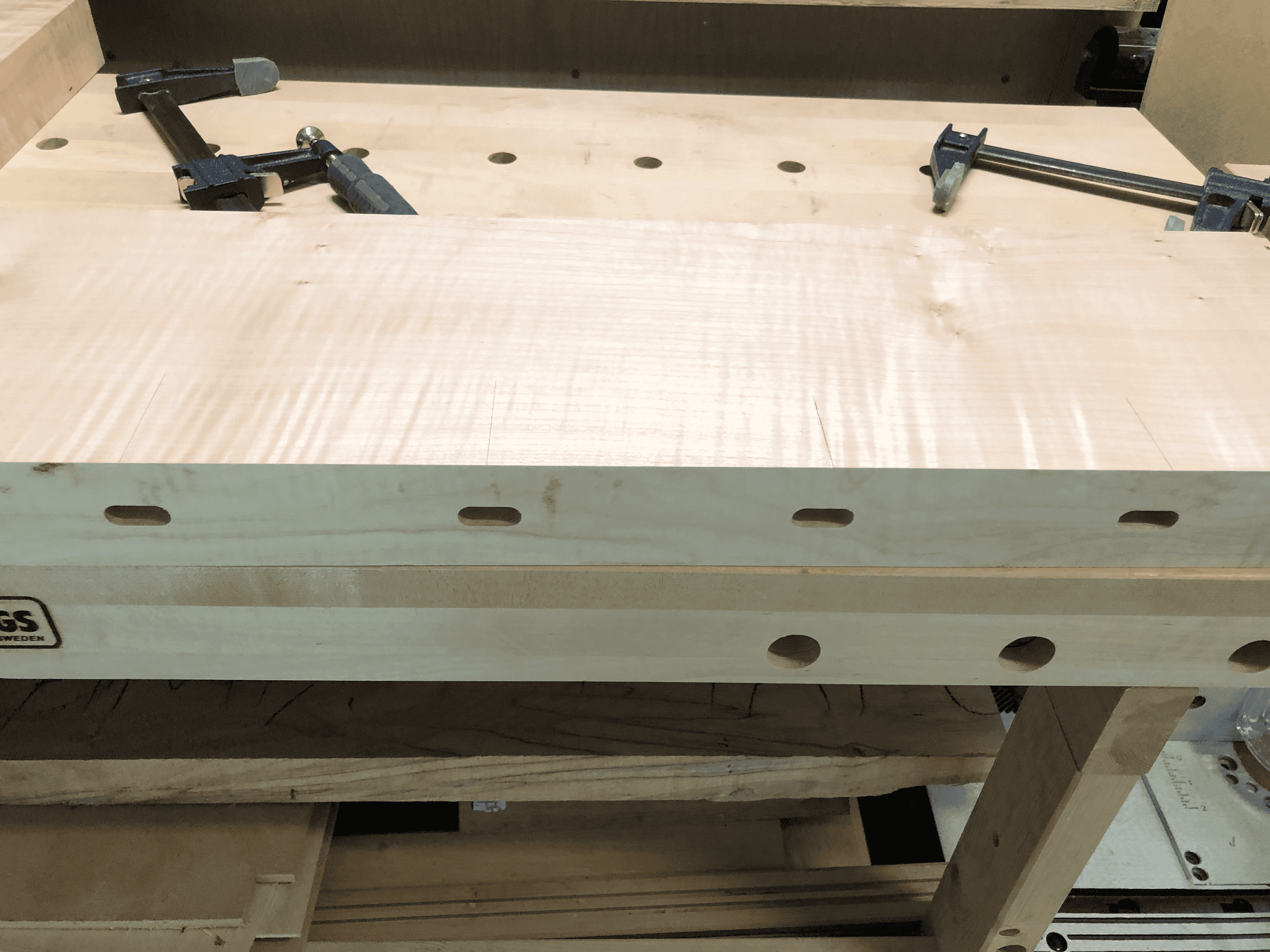 The curly maple during glue-up showed off its chatoyance - that shimmer that changes as you move around the wood. This figure is what makes curly maple so prized.